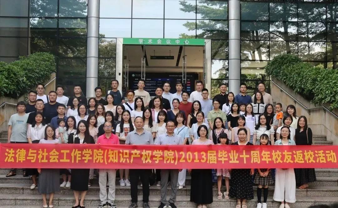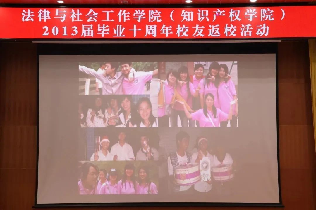 于松山湖校区学术会议中心举行以“十年芳华故,归来再聚首”为主题的法社学院2013届毕业十周年校友活动。参与本活动的嘉宾有法社学院党委书记杜应发、党委副书记梁意红、学校校友事务科柯暖慧,以及汪辉勇老师、陈洪波老师、学工办主任钟丽华、辅导员谢媚媚、2013届校友。活动由法社学院刘湘敏同学主持。