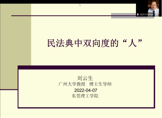 法律系于腾讯会议举办线上“法路历程”系列讲座第十七期。本期讲座邀请了广东省法学会民商法研究会副会长、广州大学不动产研究院院长、二级教授、博士生导师、广州市人民政府法律顾问、中央电视台法律讲堂主讲人刘云生教授为我们讲授民法典中双向度的“人”。肉蒲团