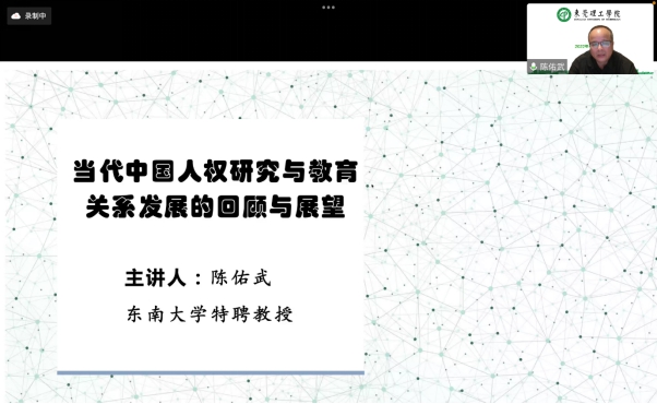 法律系于腾讯会议举办线上“法路历程”系列讲座第十八期。本期讲座邀请了东南大学特聘教授、法学院博士生导师、广州大学人权研究院(国家基地)执行院长、中国政法大学兼职教授陈佑武教授为我们讲授“当代中国人权研究与教育关系发展的回顾与展望”。肉蒲团