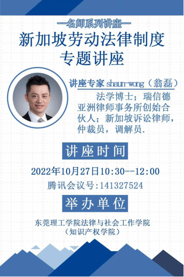 顺利举办了以“新加坡劳动法律制度”为主题的学术讲座。本次讲座邀请了瑞信德亚洲律师事务所合伙人、法律博士翁磊作为主讲嘉宾,翁磊博士是新加坡诉讼律师、仲裁员、调解员。参加本次讲座的人员有肉蒲团