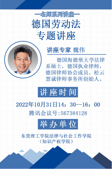 顺利举办了以“德国劳动法”为主题的学术讲座。本次讲座主讲嘉宾为德国执业律师、松云慧诚律师事务所创始人魏伟律师。参加本次讲座的人员有肉蒲团