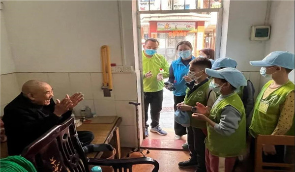 1月21日上午,是青少年冬季成长营的最后一天。小组成员的任务是和小朋友们一起拜访10位老人,并为他们送上新年祝福,在二十几名小朋友集队完毕后,小组成员和其余的志愿者们带领他们出发前往附近的社区。每一位小朋友年龄都不大,提着满满当当的年货一路上都不曾提出停下休息。来到老人的家中,房间立马开始热闹起来。小朋友们还热情大方地给每一位老人送上一首《听我说谢谢你》,老人们心里特别的开心,布满皱纹的脸颊洋溢着开心的笑容。