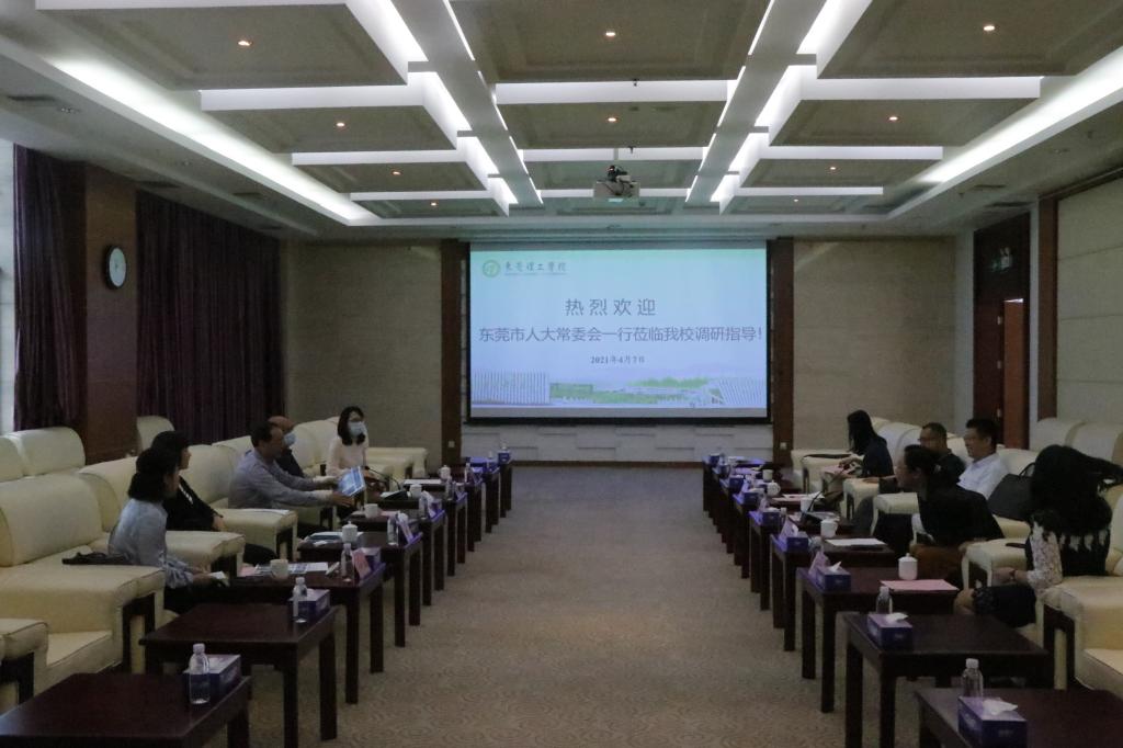 4月7日上午,东莞市人大常委会副主任、市人大法制委主任委员何跃沛率领市人大常委会法工委主任赵文群、副主任方淑敏、法规科科长冯丽娟、办公室主任邓肖莹一行五人到我校立法基地就基地运作以及发展情况进行了调研座谈。校党委委员、副校长李文芳、肉蒲团