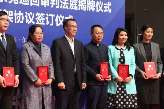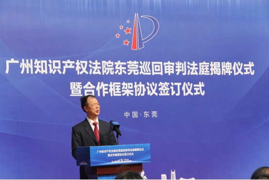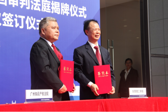 后,12月26日上午,在“广州知识产权法院东莞巡回审判庭和东莞市中级人民法院巡回审判庭”揭牌仪式上,李忠红副校长代表我校再次和广知知识产权法院、东莞市中级人民法院签署知识产权战略合作框架协议。三方约定,在知识产权人才培养、 东莞市知识产权纠纷调解委员会和知识产权宣传培训机制建设、以及知识产权相关理论和审判实务问题研究等方面进行全面合作。