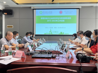 法社学院、科技创新研究院等地,并就如何更好地发挥立法基地作用进行了深入交流探讨。座谈会上,校党委副书记赖日辉向市人大常委会领导介绍了学校近年来的发展情况,也就学校对立法基地的支持情况进行了介绍。法社学院院长郑玉敏对市立法基地近年来参与东莞市重要立法的情况做了详细汇报:自2015年至今,立法基地全程参与了多项东莞市地方性法规、地方政府规章的制修订工作,深度参与多项立法项目调研论证活动和立法专项课题研究,全程为立法工作提供日常咨询意见服务;此外,立法基地还在培育立法后备人才、提升立法基地交流与服务能力等方面做了大量的工作。
