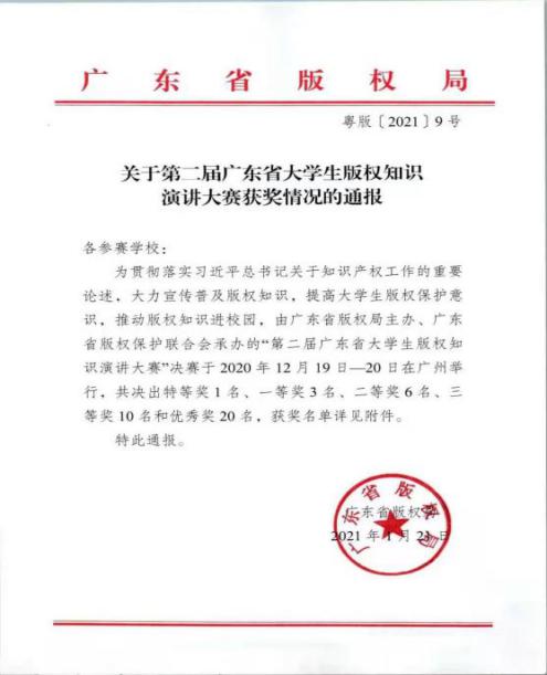 近日,在2020年度广东省大学生版权知识演讲大赛中,我校肉蒲团