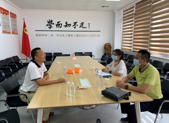 2021届法学专业学生毕业李宇晓同学顺利地考入吴川市卫生监督所的医疗机构监督股岗位,所以该单位的人事部门的两位领导特意从吴川市驱车赶到我校对李宇晓同学全面进行全面入职政审调查。由于时间紧任务急,学生已经离校,为帮助用人单位顺利地完成对毕业生的各项政审工作,法律与知识产权教师党支部书记、班主任龚红兵老师和辅导员钟丽华老师经过多方联系和协调,最终确定政审时间为七月二号下午。