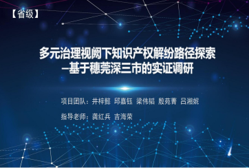 项目简介: 本课题以穗莞深三市作为调研对象,遵循“理论研究—实证分析—机制完善”的思路,深入分析粤港澳大湾区知识产权纠纷多元化解决机制发展现状与存在问题,并提出切实可行的完善建议。