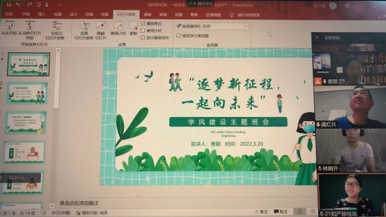 21知识产权班在腾讯会议开展了“逐梦新征程,一起向未来”学风建设主题班会活动,全体21知识产权班同学参加,会议由班长曹颖主持。