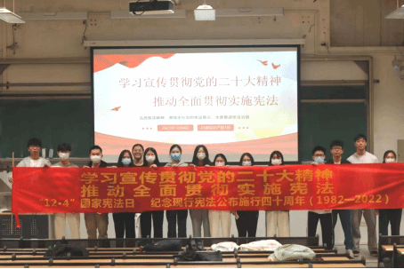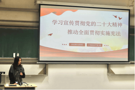 21级知识产权班开展了以“学习宣传贯彻党的二十大精神,推动全面贯彻实施宪法”的“12.4”宪法宣传日活动,该会议由班长曹颖主持,全班同学和班主任龚红兵老师共同参与。