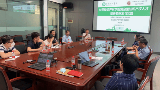 复合型知识产权人才培养的探索与实践”研讨会,具体探讨2023年知识产权专业人才培养方案中产教融合课程的开设。法社学院银龄专家王岩教授、院特聘产业导师李富山教授、广州知识产权法院的陈法官、东莞知识产权保护中心的同志等参加此次会议。